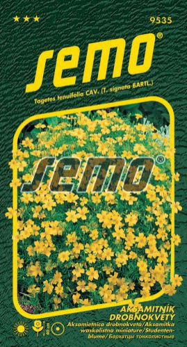 Sorte: TagetesFeinblättrige einjährige Pflanzen, die vor allem für Beete und Rabatten verwendet werden. Sie können auch in Töpfen und Kübeln verwendet werden. Sie bilden niedrige, kissenförmige Pflanzen, die das ganze Jahr über üppig blühen. Eine lohnende, anspruchslose Pflanze für sehr sonnige oder umgekehrt leicht schattige Standorte. Sorte mit einfachen gelben kleinen Blüten, 30-40 cm hoch.