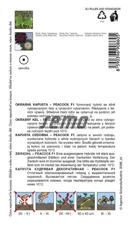 Sorte: GrünkohlMischung von Hybriden mit stark beschnittenen Blättern mit weinroten und weißen Zentren. Sehr auffällig in Gruppenpflanzungen. Zweijährige Sorte, die als einjährige Sorte angebaut wird. Im Spätsommer und Herbst, wenn die Nachttemperaturen auf 10 °C fallen, färbt sich die Mitte der Rosetten. Benötigt fruchtbaren und feuchten Boden, verträgt auch kühlere Bedingungen.