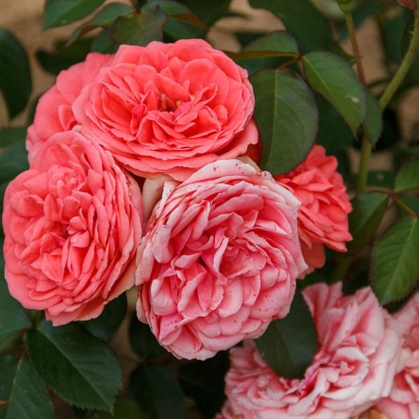 Die Blüten sind wunderschön gefüllt und dicht in einem antiken Rosa mit romantischem Aussehen.