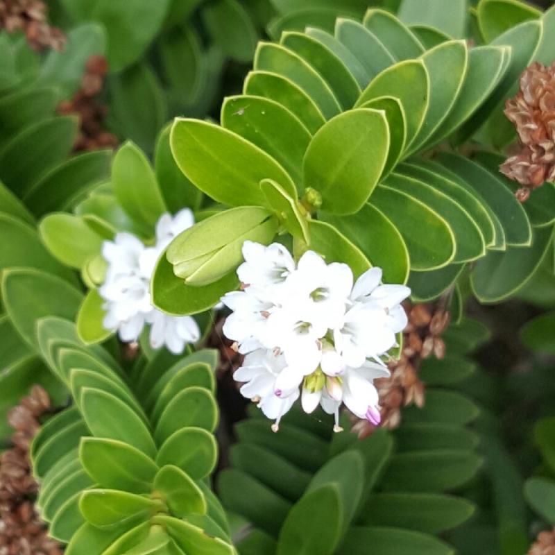 Die Hebe New Zealand Gold zeichnet sich durch grüne, kleine Blätter aus, die alle Triebe dicht bedecken.
