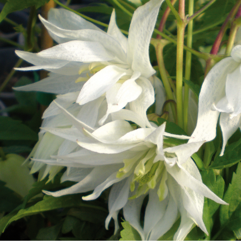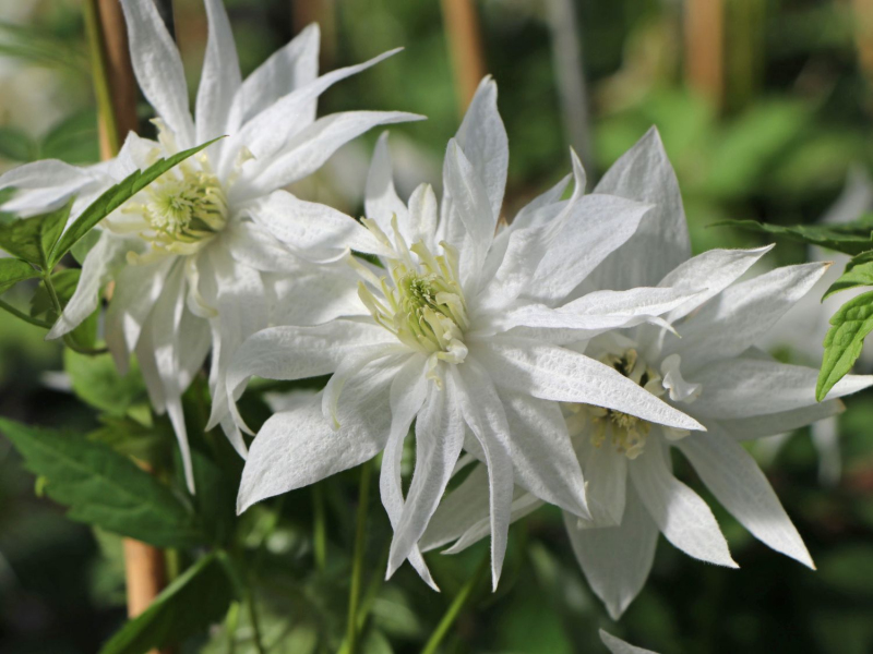 Clematis Albina Plena ist eine außergewöhnliche Clematis mit einer glockenförmigen gefüllten Blüte.
