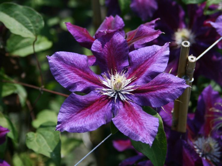 Clematis Julka ist eine großblütige Kletterclematis mit Blüten von bis zu 14 cm Durchmesser.