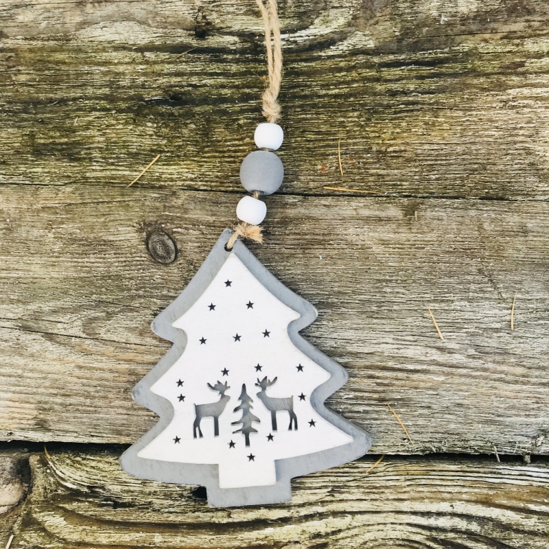 Weihnachtsbaum zum Aufhängen grau mit weiß