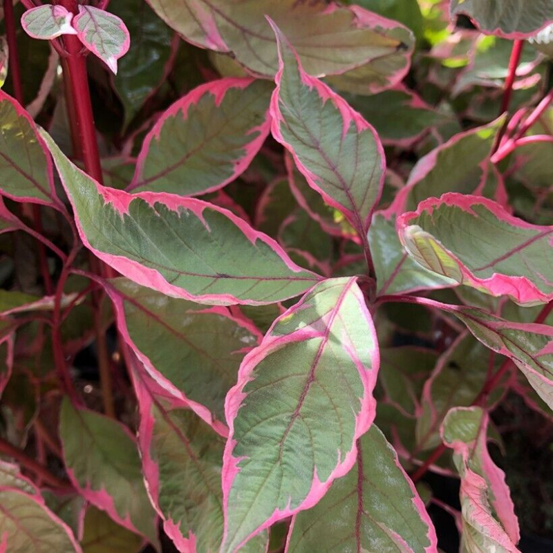 Miracle ist ein sommergrüner, robuster und anspruchsloser Strauch, der das ganze Jahr über schöne Farben bietet. Im Frühjahr und Sommer erscheint buntes grünes und weißes Laub mit einem rosa Rand, und im Spätsommer und Frühherbst färbt sich das Laub intensiv lila-rosa. Wenn die Blätter fallen, kommen im Winter leuchtend rote Stängel zum Vorschein, die auch in den grauen Tagen des Winters für die nötige Portion Farbe sorgen.