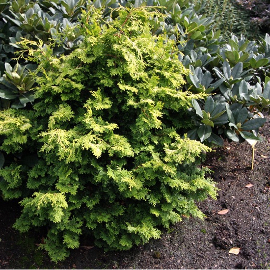 Eine Zwergzypresse, ungewöhnlich in ihrer Form und leuchtend gelben Färbung. Sie ist eine langsam wachsende Pflanze, bei der der jährliche Zuwachs maximal 5 cm beträgt. Sie ist für kleine Gärten geeignet, leicht zu züchten, schneidet nicht!