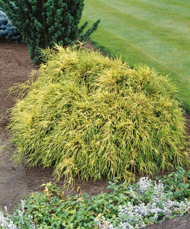 Die leuchtend gelbe Färbung seiner Nadeln, wird jeden Garten aufhellen und verschönern.
